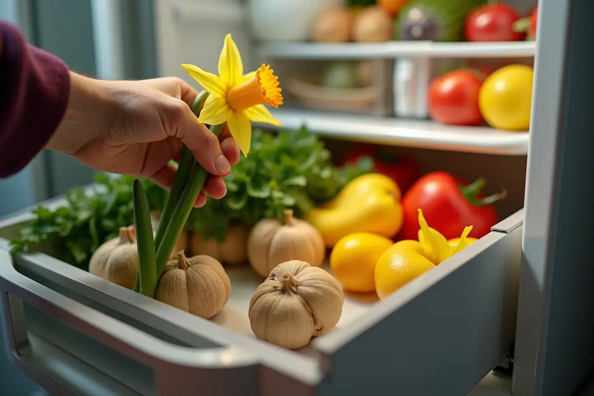 Pour mimer l’hiver, un séjour au réfrigérateur entre 4 et 8°C, durant six à huit semaines, fait toute la différence. Ce passage au frais donne aux bulbes de tulipes et de jonquilles l’impulsion nécessaire pour se préparer au renouveau du printemps, même dans les régions où le gel ne s’invite plus.